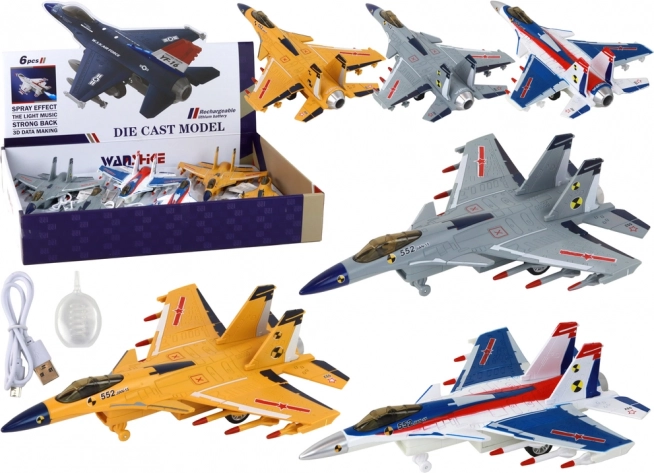 Pri uključivanju zrakoplov reproducira zvukove polijetanja lovca, što pridonosi autentičnosti i potiče dječju maštu tijekom igre.
