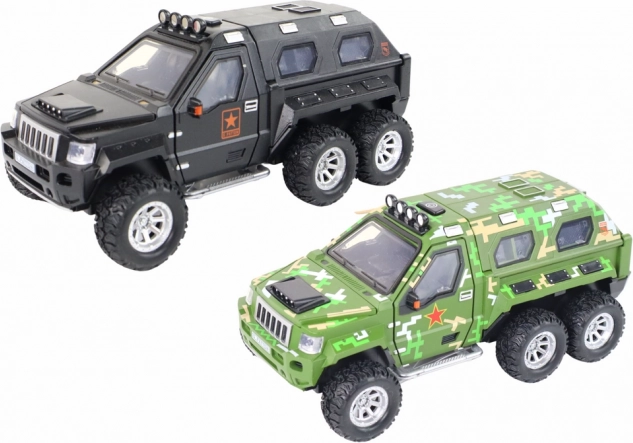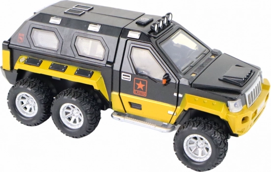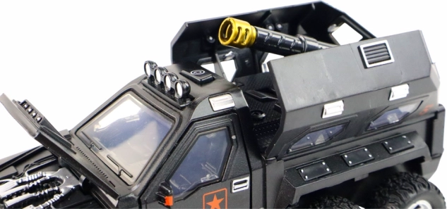 Realistično izrađeno terensko vozilo za male pustolove nudi izvlačni top, svjetlosne i zvučne efekte te inercijski pogon za dinamičnu vožnju. Zahvaljujući gumenim kotačima glatko se kreće po raznim podlogama, izrađeno je od kvalitetne plastike i dostupno u 3 boje (crna, žuta, maskirna). Napajanje 3× AAA (nisu uključene). Prikladno od 3 godine. Dimenzije 18 × 7 × 9,5 cm.