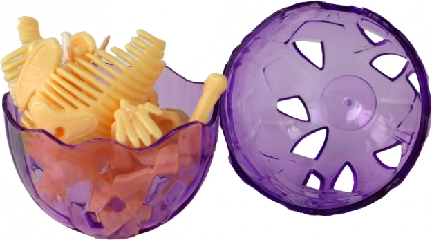Na izbor su 4 boje jaja – ljubičasta, narančasta, zelena i crvena. Jaje se lako otvara i zatvara, stoga je idealno za ponovljenu igru, spremanje dijelova ili kao kolekcionarski predmet.