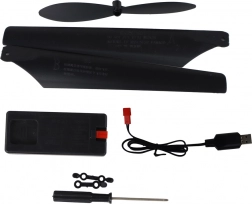 Set uključuje daljinski upravljač na koji je pričvršćen sklopivi držač za telefon. Nakon instalacije posebne aplikacije na telefon, možete pratiti prikaz kamere na zaslonu telefona i upravljati helikopterom.