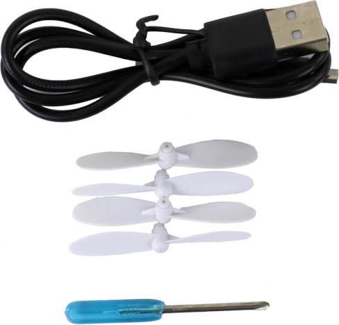- Avion, upravljač, akumulator, USB kabel za punjenje, 4 rezervna propelera, upute