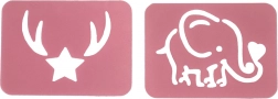 Šablone s motivom slona i zvijezde imaju zaobljene rubove i jednostavne oblike kako bi djeci bile ugodne za rad na noktima i papiru.