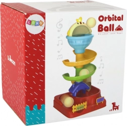 Spiralna konstrukcija s izraženim bojama privlači igri te trenira koordinaciju oko–ruka, hvat i razumijevanje uzroka i posljedice.