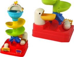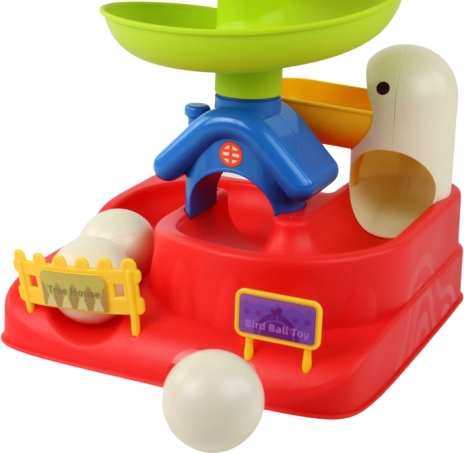 Ova interaktivna kuglična igra nudi djeci šarenu stazu visoku približno 36 cm, niz koju se kotrljaju kuglice nalik jajima. Pilić na vrhu staze dodaje zvučne poticaje koji bude znatiželju i pomažu razvijati kognitivne vještine.