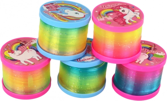 Zabavan dugin opružnik s motivom jednoroga i ugrađenom LED diodom za čaroban svjetlosni efekt. Zahvaljujući tanjurićima na krajevima ne zapetljava se, odlično svijetli u mraku i pruža puno zabave djeci od 3 godine. Certifikati CE i norma EN71 za sigurnu igru.