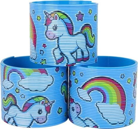 Ova igračka je idealan poklon ne samo za djecu koja vole boje i bajkovite naglaske, već i za odrasle. Rukovanje oprugom, promatranje duginih boja i motiva jednoroga te njezin karakterističan zvuk pri svakom istezanju ili uvijanju pomažu u smanjenju stresa i napetosti.