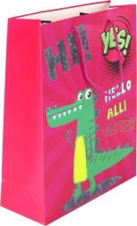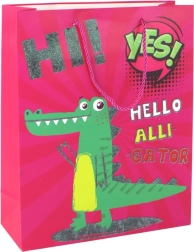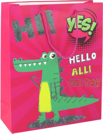 Dodajte svojim poklonima šarm! Ružičasta darovna vrećica s krokodilom idealna je za rođendane, blagdane i dječje proslave. Spaja atraktivan izgled s praktičnom funkcionalnošću – lagana je, ali dovoljno čvrsta za sigurno prenošenje poklona.