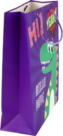 Tražite originalno i praktično pakiranje poklona? Ova papirnata poklon-vrećica s dinosaurom u ljubičastoj boji izvrstan je izbor za rođendane, blagdane i proslave. Zabavan motiv i nježno blistavi elementi daju svakom poklonu šarm, dok čvrsta izrada osigurava sigurno prenošenje.
