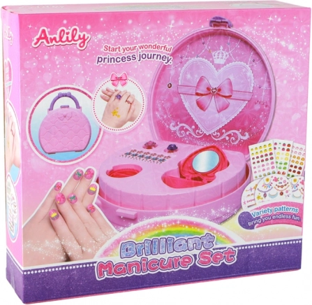 Otkrijte kompaktan ružičasti kovčeg koji poziva u svijet mode i mašte. Nakon otvaranja djecu dočekuje slatko preklopno zrcalce u obliku srca koje svakoj preobrazbi dodaje šarm i samopouzdanje. U kompletu su i dva blistava prstenčića te naljepnice za nokte za originalno ukrašavanje.