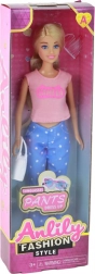 Stilizirana lutka ANLILY s dugom plavom kosom dolazi u ružičastom topu, plavim hlačama s zvjezdicama i ružičastim tenisicama. U kompletu su bijela torbica i plave naočale za kreativno stiliziranje. Veličina lutke 30 × 7 × 5 cm, pakiranje 32 × 11 × 5 cm. Certifikacija CE, norma EN71, prikladno od 3 godine.