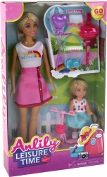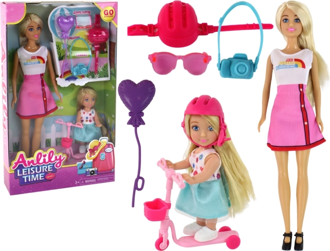 S ovim setom lutaka Anlily Mama i Kći, vaše dijete ulazi u svijet mašte i radosti. Lutka Mama visoka je 30 cm i nosi moderne ružičasto-bijele haljine s crnim cipelama na petu i ružičastim naočalama, što joj daje jedinstven stil. Lutka Kći visoka je 12 cm, obučena je u simpatične plave haljine i bijele cipele. Obje lutke imaju dugu plavu kosu i plave oči.