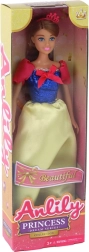 Predstavljamo vam čarobnu lutku Anlily Princeza, idealnu pratiteljicu za vaše male sanjare. Visoka 30 cm, ističe se ljepotom i stilom. Prekrasna duga tamna kosa i plave oči dodaju joj ljepotu. Visoko stilska žuta haljina s plavim sjajnim gornjim dijelom i ružičastim rukavima privlači na prvi pogled. Cijeli izgled upotpunjuje ružičasta traka s krunom i stilske ružičaste cipele na petu.