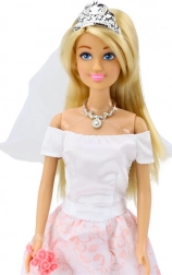 Elegantna tijara i ogrlica zajedno s buketom daju lutki uzvišen izgled, idealan za ulogu mladenke.