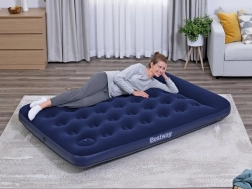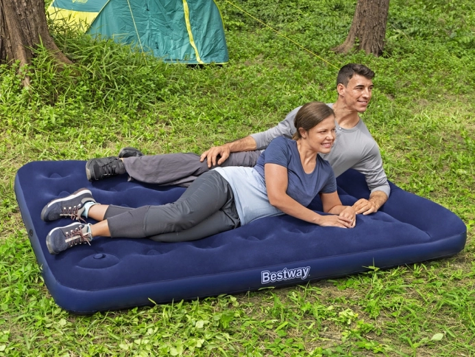 Dvostruka napuhaća madrac BESTWAY nudi udoban san kod kuće i na putu. Zahvaljujući dimenzijama 191 × 137 × 28 cm na nju se udobno smještaju dvije odrasle osobe. Konstrukcija coil-beam osigurava stabilnost, baršunasto mekan flockani površinski sloj pruža ugodan dodir, a ugrađena nožna pumpa omogućuje brzo napuhavanje bilo gdje. Naravno, tu je i ugrađeni jastuk te ventil za brzo ispuštanje zraka za lako ispuhivanje.