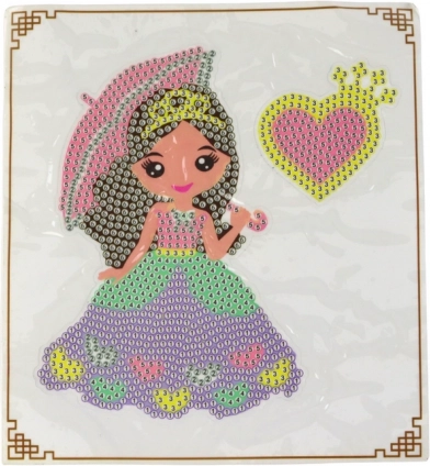 Kreativni set za male umjetnike donosi zabavu i razvoj vještina: izradite privjesak u obliku princeze tehnikom dijamantnog stvaranja. Pakiranje sadrži 6 boja kamenčića, aplikator i posudicu za lakši rad. Idealno za djecu od 6 godina, s CE certifikatom i normom EN71.