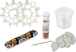 Dio kompleta su ukrasne kuglice za razigrane 3D efekte – dovoljno ih je posuti po mokrom laku. Djeca mogu ukrašavati i umjetne nokte te eksperimentirati s oblicima i duljinama. Posebna čašica namijenjena je miješanju vlastitih boja, pa mašti nema granica.