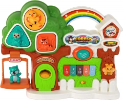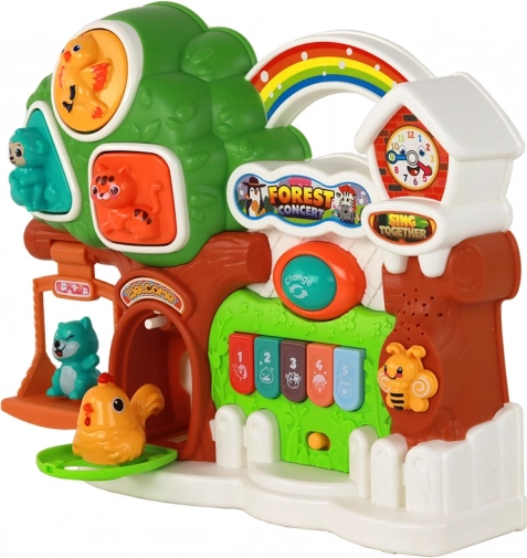 U krošnji stabla smješten je edukativni panel koji budi djetetova osjetila. Kada dijete pritisne elemente mačke, ptice ili majmuna, svaki od njih ispušta karakteristične zvukove. To je izvrstan način za razvoj slušnih sposobnosti i motoričke koordinacije.