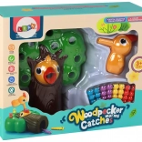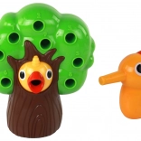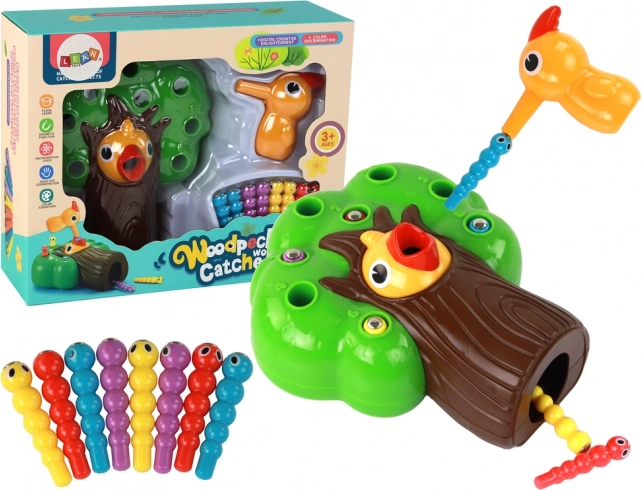 Paket sadrži stabalce s otvorima, magnetičku ptičicu za izvlačenje crvića, šarene crviće i ptića/gnijezdo za “hranjenje”.