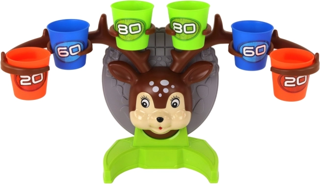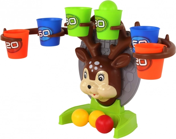 Sastavite simpatičnog jelena, pripremite šarene čašice s bodovima i krenite u igru. Cilj je odbiti lopticu od stola i pogoditi čašicu s što višom vrijednošću. Šareno izvedenje potiče na igru i ujedno razvija preciznost, opažanje i finu motoriku.