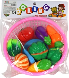 U pakiranju je 8 vrsta povrća, plastični nož i tanjurić – sve što je djeci potrebno za oponašanje kuhinjskih aktivnosti i posluživanje „jela“.