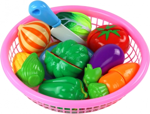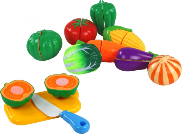 Svaki komad povrća podijeljen je na polovice spojene čičkom. Djeca mogu „rezati“ plastičnim nožem iznova i iznova, čime razvijaju finu motoriku i strpljenje.