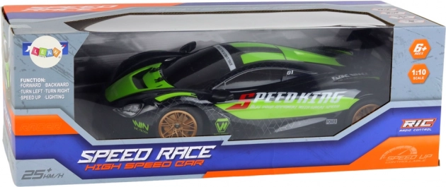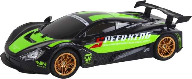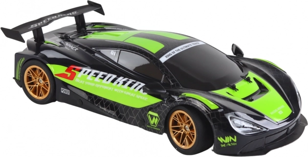 Uživajte u adrenalinu s ovim RC sportskim automobilom u mjerilu 1:10 u zeleno‑crnom dizajnu sa zlatnim naplatcima. Nudi brzinu do cca 25 km/h, glatko upravljanje na 2,4 GHz, svjetlosne efekte i napajanje iz 7,4 V akumulatora. Idealan za zabavu na otvorenom i u zatvorenom za djecu od 6 godina.