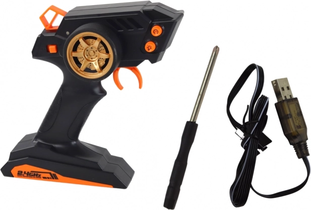Model dolazi s 7,4 V akumulatorom i USB punjačem za praktično punjenje. Upravljač radi na 2× AA 1,5 V (nisu uključene). Zahvaljujući dimenzijama približno 42,5 × 22 × 10 cm donosi impresivan omjer veličine i performansi za zaista zabavnu vožnju.