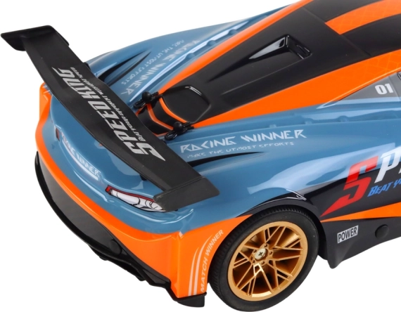 Otkrijte zabavu punim gasom s precizno izrađenim RC autom u mjerilu 1:10. Narančasto-plavo sportsko izdanje sa zlatnim kotačima i stražnjim spojlerom donosi sjajan izgled i performanse. Zahvaljujući frekvenciji 2.4G imate stabilan domet i nulte smetnje, pa možete voziti s više vozila odjednom.