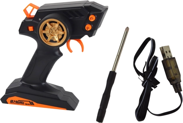Moderni odašiljač na frekvenciji 2.4G osigurava stabilnu vezu bez smetnji i omogućuje vožnju s više modela istovremeno. Ergonomski okidački upravljač sigurno leži u ruci.