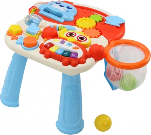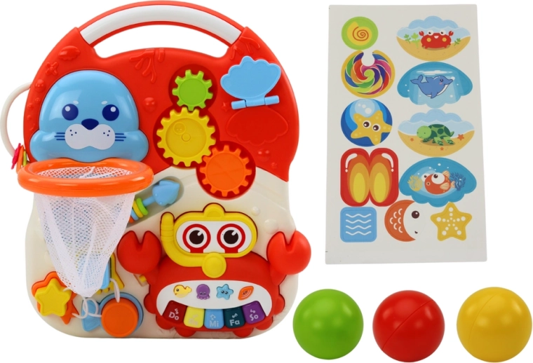 Na raspolaganju je i dodatna atrakcija – koš u koji se mogu ubacivati šarene zvečkaste loptice, što dodatno razvija manualne vještine i motoričku koordinaciju vašeg djeteta.