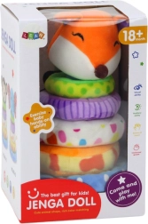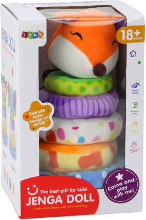 Ova šarena plišana piramida ugodna je na dodir, a zahvaljujući obliku piramide djeci je lako slagati je. Prstenovi različitih veličina i naglašenih boja potiču koordinaciju oko–ruka, razvoj fine motorike i prve logičke zaključke. Na vrhu čeka simpatična lisica koja potiče maštu i učenje čini zabavnim.