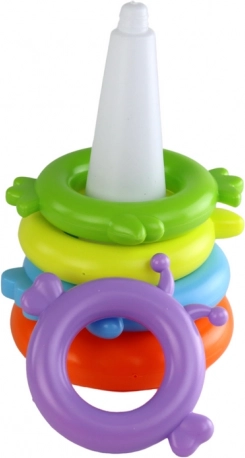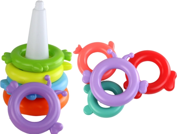 Hvatanje, nizanje i slaganje prstenova jača finu motoriku i koordinaciju oko–ruka. Idealna prva didaktička igračka za male istraživače.