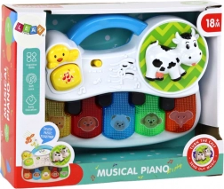 Malo prijenosno pianino dizajnirano je za dječje ručice i prve glazbene korake. Šarene tipke sa životinjskim motivima pozivaju na igru, svjetiljke pri pritisku tipki vizualno nagrađuju, a jednostavne melodije potiču prirodnu znatiželju.