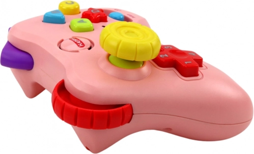 Slatki ružičasti interaktivni upravljač za najmlađe donosi svjetla, zvukove i dva načina igre – glazbeni/interaktivni i edukativni. Ispod svake tipke skrivaju se melodije i efekti koji potiču razvoj osjetila, finu motoriku i prepoznavanje oblika i boja. Idealan za dom i putovanja.
