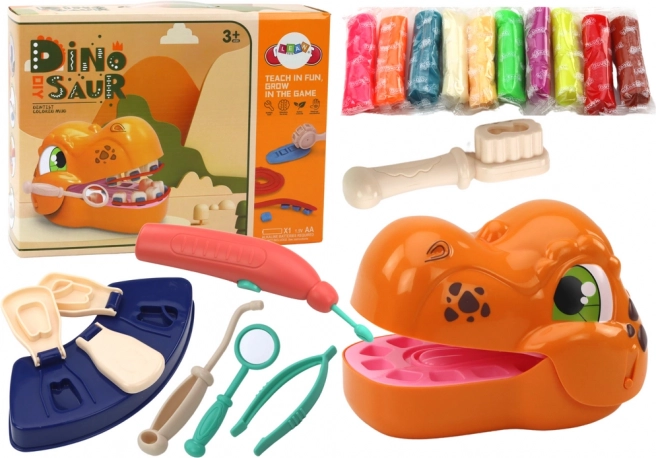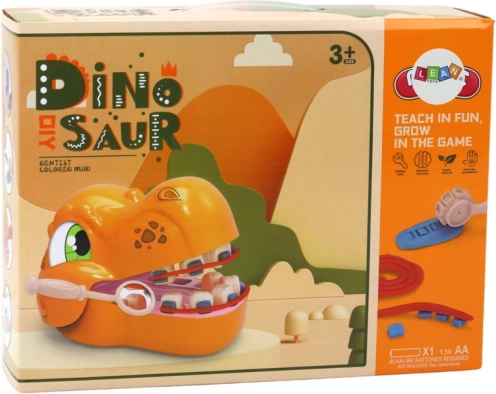Zabavan kreativni set za male zubare s glavom dinosaura i bogatom opremom. Djeca će s njim isprobati liječenje zubi, oblikovanje plombi i aparatić. Razvija kreativnost, finu motoriku i pomaže otkloniti strah od zubara. U pakiranju je 10 boja modelina, 7 dentalnih alata i glava dinosaura s kalupima za zube.