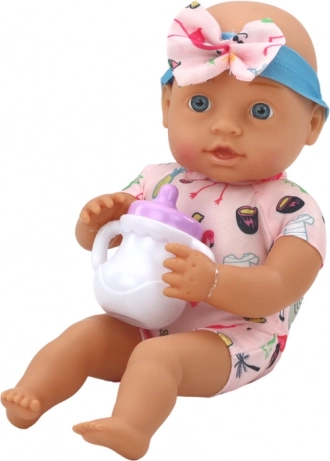 Preslatka beba u svijetloružičastoj odjeći s motivom plamenjaka i palmi, upotpunjena trakom za kosu s mašnicom. U kompletu su praktični dodaci za igru njege: zdjelica sa žličicom i vilicom te bočica. Ova lutka potiče kreativnu igru, razvoj empatije i uvježbavanje njege kod djece od 18 mjeseci. Uključuje CE certifikaciju i usklađenost s EN71.