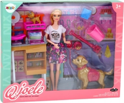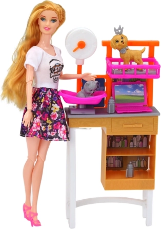 Ovaj šareni set spaja svijet mašte i učenja – lutka u cvjetnoj haljini brine se o psima i mački, kupa ih, četka, važe i hrani. Djeca isprobavaju ulogu skrbnika i malog veterinara te uče da je dio brige i čišćenje za ljubimcima.