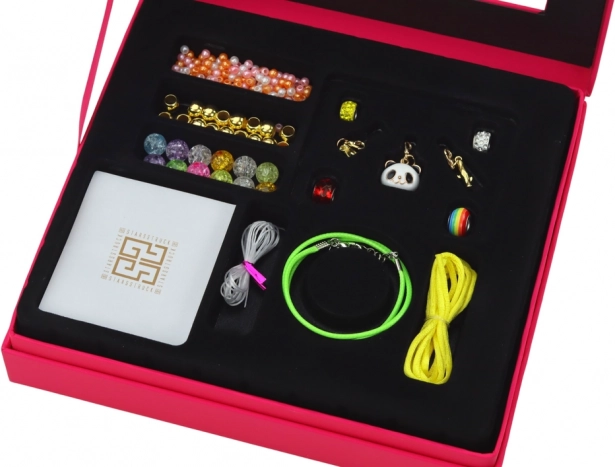 Zahvaljujući priloženom najlonu, špagici i ogrlici (može se nositi i kao dvostruka narukvica), izrada je jednostavna i zabavna. Sve je pohranjeno u praktičnoj, poklon-kutijici u ružičastoj boji.