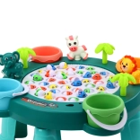 Stabilan zeleni stolić s palmama i životinjicama stvara tematsko okruženje. Djeca imaju sve pri ruci, a igra je pregledna i za više igrača.