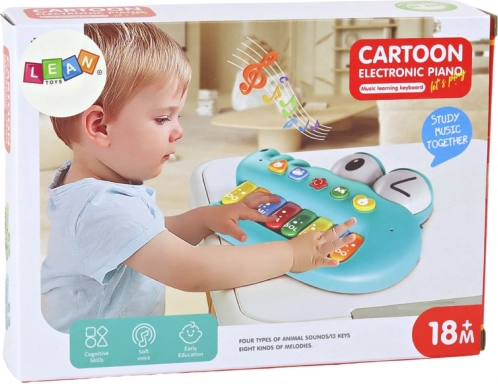Pianino u obliku krokodilje glave pretvara prve dodire s glazbom u zabavu. Krokodilji zubi služe kao šarene tipke s notama, zahvaljujući kojima djeca lako pamte tonove, istražuju ljestvicu i stvaraju vlastite melodije. Svjetlosni i zvučni efekti potiču znatiželju i zadržavaju pažnju i najmlađih.