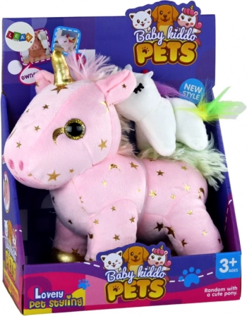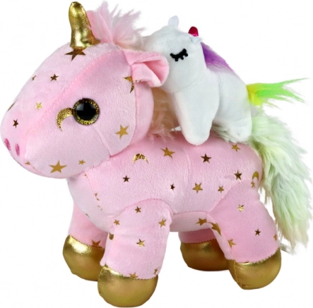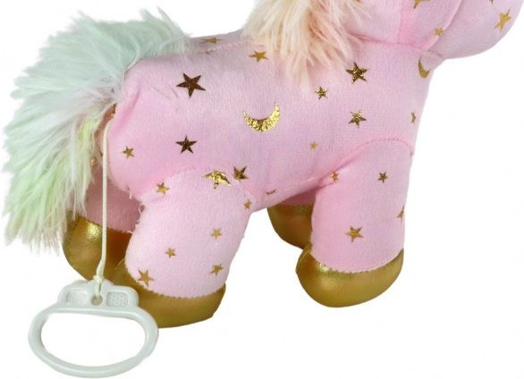 Baršunasto ružičasti materijal sa zlatnim zvjezdicama i sjajnim detaljima čini jednoroga preslatkim pratiteljem i dekoracijom.