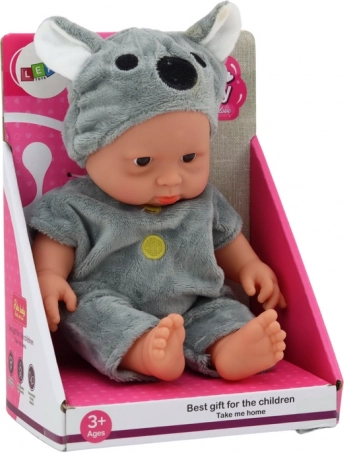 Ova šarmantna beba lutka u koala stilu osmišljena je za male ručice i veliku maštu. Mekani sivi odijelac sa žutim gumbićima i kapica s koala ušima daju lutki neodoljiv izgled. Zahvaljujući pokretnim udovima i rotirajućoj glavici djeca mogu lako mijenjati položaje i stvarati vlastite priče.
