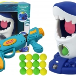 Set je vrlo jednostavan za rukovanje. Dovoljno je napuniti pištolj mekanim kuglicama i spremni ste za gađanje. Kada pogodite jezik morskog psa, igra će proizvesti zvuk koji potvrđuje pogodak, a na malom LCD zaslonu vidjet ćete svoj rezultat. U pakiranju se nalazi sve potrebno za početak igre – pištolj i posebne mekane kuglice.