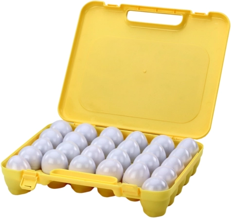 Žuta kofer-torba omogućuje jednostavan prijenos jaja i štiti ih od oštećenja. Zahvaljujući tome, igračka je idealna za putovanja.