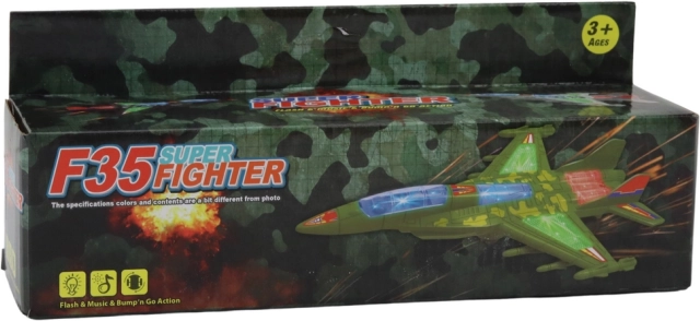 Siva kamuflaža, izražena krila i detalji naoružanja podsjećaju na pravi lovac F‑35. Djeca se lako mogu uživjeti u hrabre pilote i smisliti mnogo akcijskih misija.