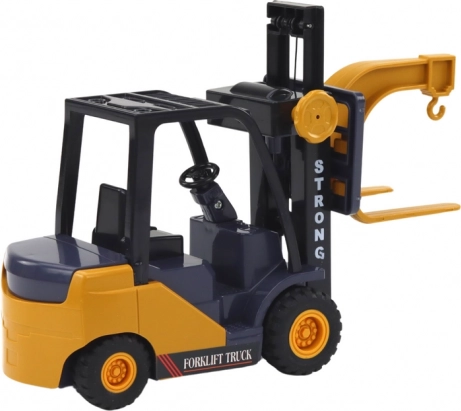 Dječji viličar s kukom donosi realistične građevinske avanture u dječju sobu. Zahvaljujući podesivim vilicama s kukom djeca mogu lako simulirati utovar i istovar, dok trenjni pogon omogućuje glatko kretanje bez baterija. Kombinacija žute, crne i sive boje privlači pažnju i potiče maštu.