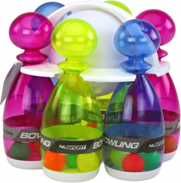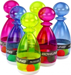 Zabavna obiteljska igra za dom i vani! Ovaj set sadrži 6 prozirnih šarenih čunjeva (2 ljubičasta, 2 plava, 2 žuta) i ergonomsku kuglu za precizno rušenje. Izdržljiv materijal s prozirnim dizajnom omogućuje vidjeti kuglice unutra za još jači efekt. Certifikacija CE, u skladu s normom EN71, prikladno za djecu od 3 godine.