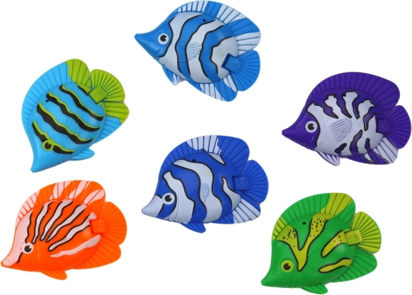Dio seta je šest raznobojnih ribica s izraženim detaljima koje plutaju na površini i mame na igru. Djeca uvježbavaju preciznost i strpljenje.