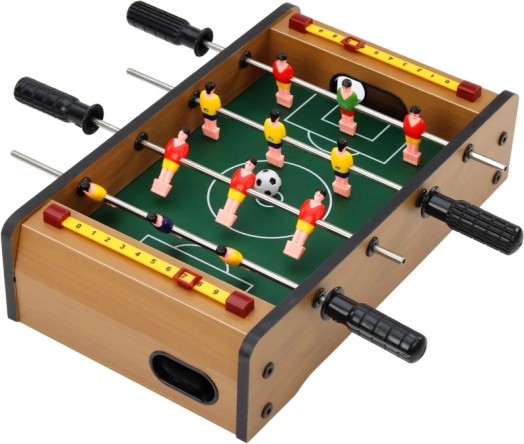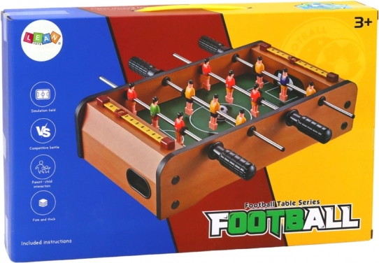 Kompaktni mini stolni nogomet za cijelu obitelj donosi zabavu bilo kada i bilo gdje. Čvrsta drvena konstrukcija, upravljačke ručke s glatkim hodom i timovi u različitim bojama za brzu orijentaciju. Idealan za male prostore, lako se prenosi i sprema. Pogodno za djecu od 3 godine, CE certifikacija, u skladu s EN71.