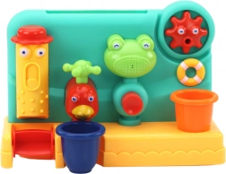 Uljepšajte kupanje zabavom s ovom interaktivnom vodenom igračkom. Zahvaljujući vakumskim čepovima lako je pričvrstite na kadu, ulijete vodu u gornji dio i pokrenete šarene elemente. Djecu će oduševiti vodeni mlinac, fontanica, slavina i zabavna žabica s vodenim izljevom. Idealno za razvoj motorike i učenje kroz igru tijekom svakodnevnog kupanja.